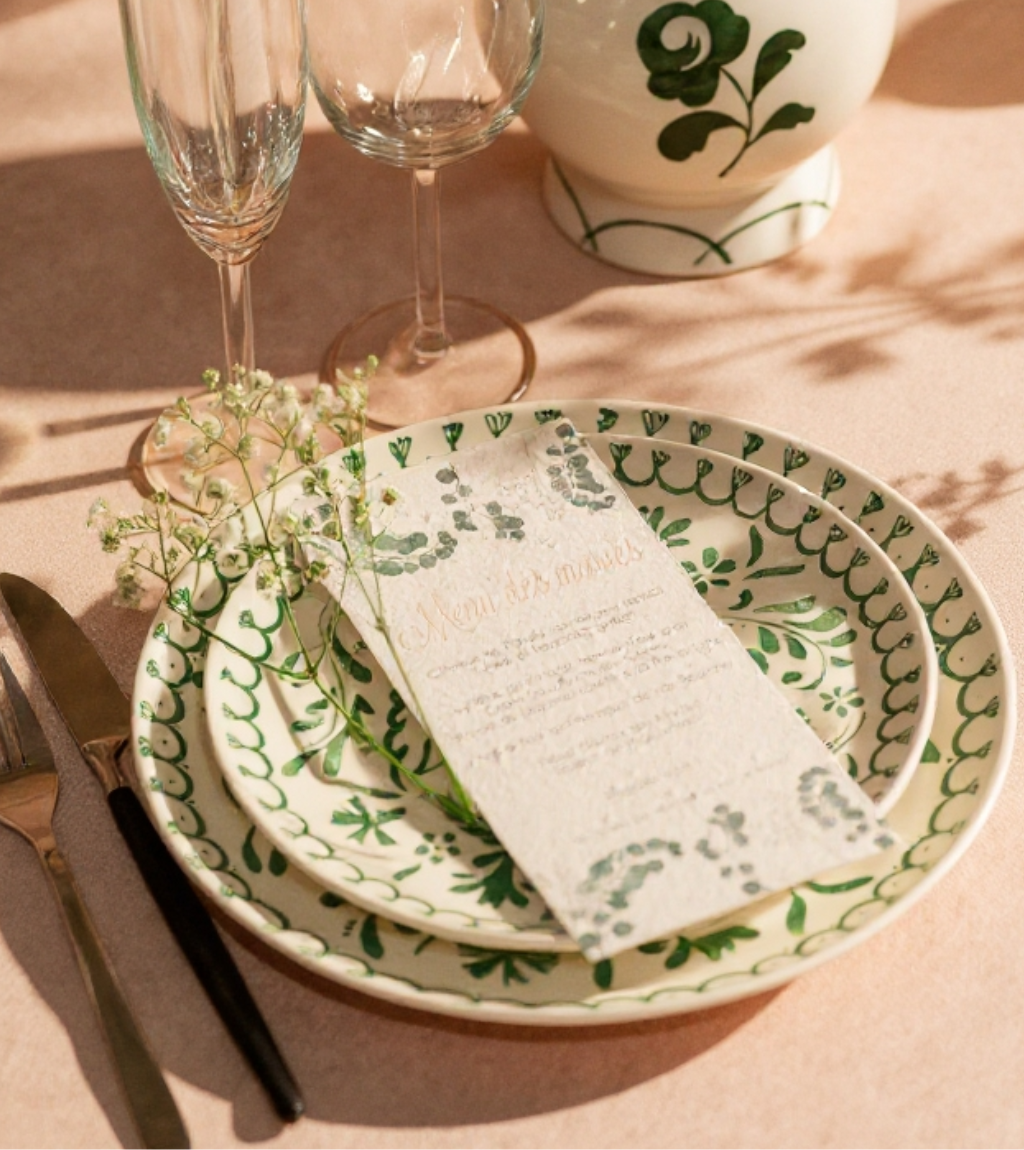 • Nous sommes enchantés de nos faire-parts et de nos menus! Le rendu est encore plus beau que ce qu'on imaginait! L'équipe est à notre écoute et répond très rapidement. L'envoi était soigné et est arrivé dans la semaine. Tout est parfait !