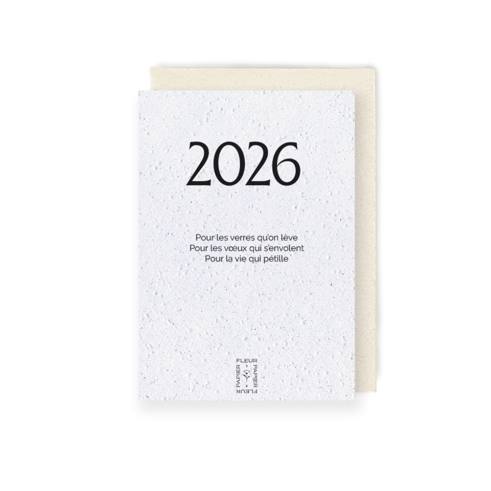 La Carte à planter 2026 « 2026 » offre une manière poétique, responsable et chaleureuse de célébrer l’arrivée de la nouvelle année. Imprimée sur un papier ensemencé Premium 250g renfermant des graines de fleurs des champs, cette carte de vœux 2026 devient un message vivant : une fois plantée, elle se transforme en petites pousses florales.
